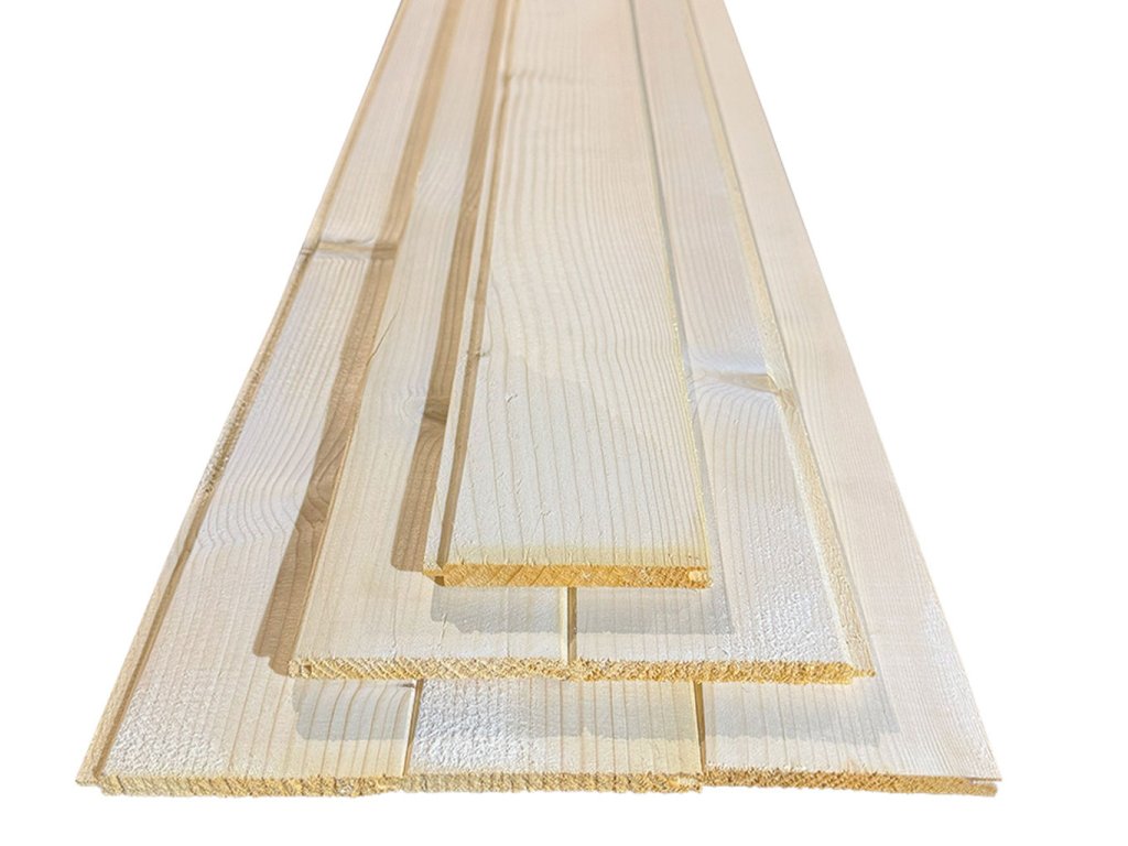 Palubky jsou vyráběny z kvalitního severského smrku (Picea abies), který se vyznačuje vysokou hustotou, jemnou kresbou letokruhů a velmi dobrou rozměrovou stálostí. Dřevo je technicky sušené na přibližně 12–14 % vlhkosti, čímž se minimalizuje riziko kroucení, sesychání či tvorby prasklin po montáži.
