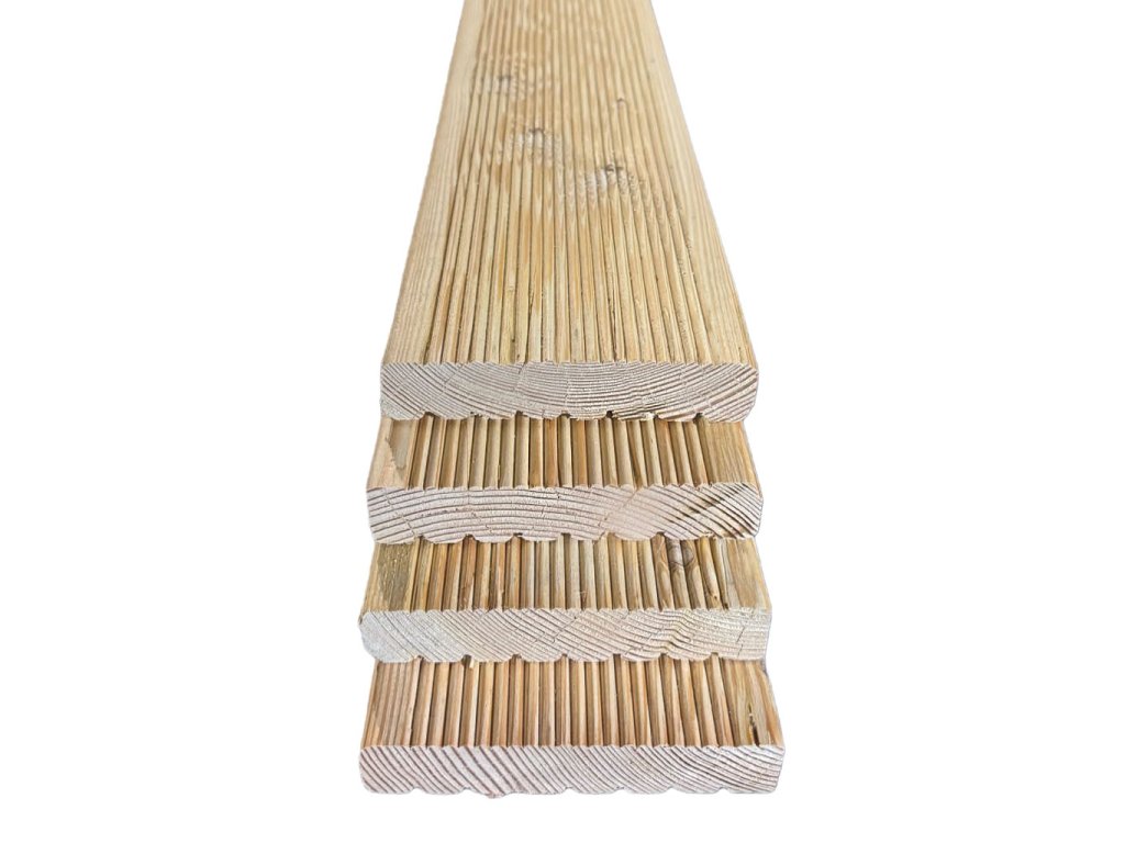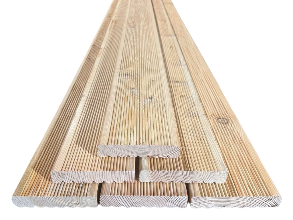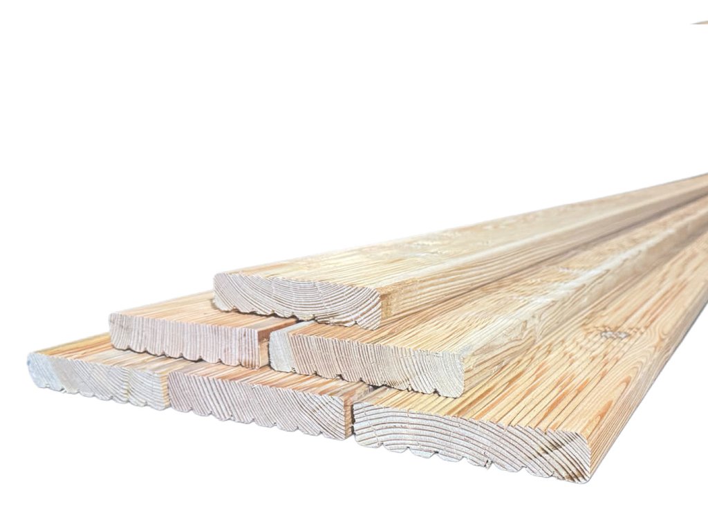 Terasová prkna jsou vyráběna z kvalitního modřínu, který vyniká vysokou hustotou, tvrdostí, dlouhou životností a přirozenou odolností vůči vlhkosti a dřevokazným organismům. Dřevo je technicky sušené na přibližně 13–16 % vlhkosti, což zaručuje stabilitu a minimalizuje riziko kroucení či praskání po montáži.